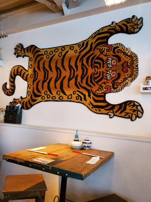 2階の壁には大きな虎がいます。