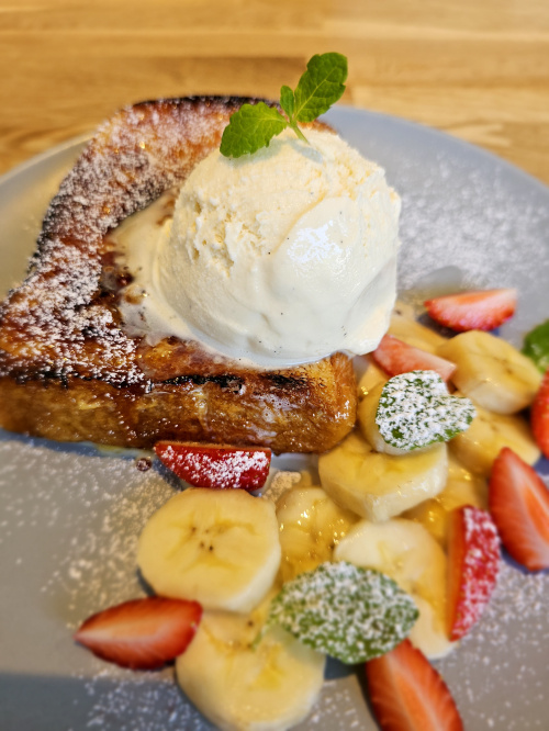 甘いのが無性に食べたくなってしまい、フレンチトーストとカフェラテをいただきました。