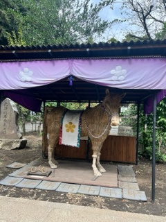 今にも動きそうな馬は、木と藁でつくられた「神馬」といものでした。
