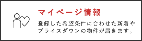 無料会員登録いただくと、自分だけのお気に入り条件が保存できる「マイ条件検索」や新着物件情報のメール配信、資料請求やお問い合わせも簡単にできるなど、便利な機能が満載です。